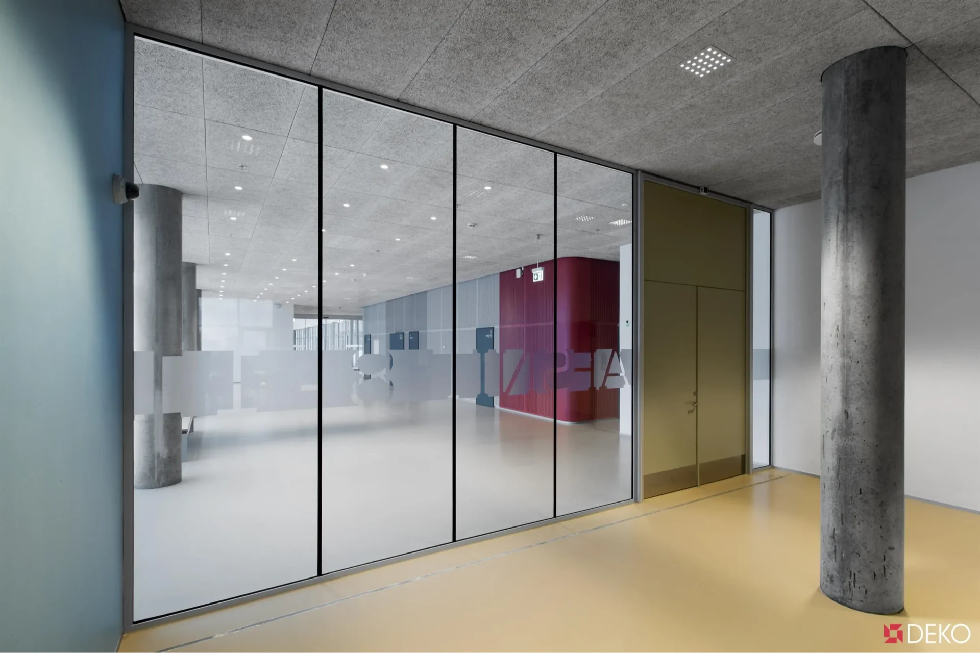 DEKO FG veggen kan også leveres i lydklasser opp til Rw 53 dB, og brannklasser helt opp i EI-120, da med betegnelsen FG Fire Profile. FG Fire med sort eller klar fuge i vertikale skjøter kan leveres opp til EI60.